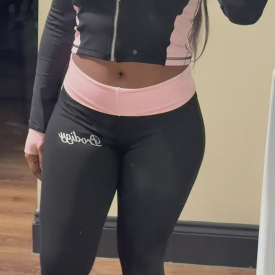 Paired with ultra low-rise flare leggings, this set embraces a signature Y2K-inspired silhouette. Sitting extremely low on the waist, the leggings contour your curves for a snatched yet comfortable fit. The embroidered Prodigy logo on the upper thigh adds a clean, elevated detail that completes the look.