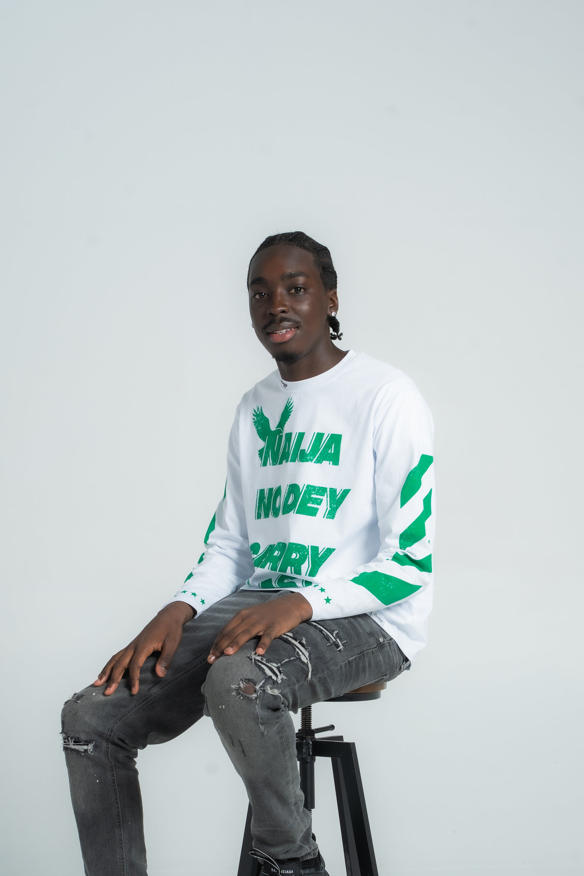 The Naija No Dey Carry Last Longsleeve embodies the spirit of resilience. With bold typography across the chest and striking green stripes down the sleeves, it’s built to stand out while staying versatile.